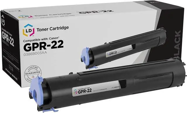 This is a compatible Canon 0386B003AA (GPR-22) black laser toner cartridge guaranteed to perform with Canon laser printers. It replaces the original Canon GPR22 laser toner cartridge. The compatible replacement 0386B003AA laser toner cartridges and supplies (also known as generic) are specially engineered to meet the highest standards of quality, reliability and exceptional yields that meet or exceed OEM (Original Equipment Manufacturer) standards for the GPR-22 and offer high-quality printing results. Manufactured 100% brand new, containing only new components, they are an economical alternative to expensive OEM 0386B003AA Canon laser toner cartridges and supplies, and offer big savings over brand-name GPR22 laser toner cartridges and supplies. The use of compatible replacement laser toner cartridges and supplies does not void your printers warranty. We offer a Two Year 100% Quality Satisfaction Guarantee on our compatible 0386B003AA (GPR-22 / GPR22) laser toner cartridges and supplies. LD ?? Cartridges are manufactured in an internationally certified ISO 9002 factory. LD ?? cartridges come with a 100% Two Year money back guarantee and technical support. For use in the following printers:1023, 1023IF, 1023N, 1025, 1025IF, and 1025N. We are the exclusive reseller of LD Products brand of high quality printing supplies.