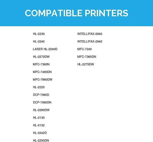 Save and print even more when you shop with LD Products! This offer includes 6 TN450 high yield black laser toner cartridges; they replace the TN420 standard yield cartridge. Why pay twice as much for brand name Brother toner when our compatible printer supplies deliver excellent quality results for a fraction of the price? Each cartridge is 100% brand new and manufactured to meet or exceed the highest quality and performance standards. Our compatible brand replacement laser cartridges for your Brother printer are backed by our 100% satisfaction and lifetime guarantee. Compatible with Brother: DCP-7060D, DCP-7065DN, HL-2130, HL-2132, HL-2220, HL-2230, HL-2240, HL-2240D, HL-2242D, HL-2250DN, HL-2270DW, HL-2275DW, HL-2280DW, Intellifax 2840, Intellifax 2940, MFC-7240, MFC-7360N, MFC-7365DN, MFC-7460DN and MFC-7860DW. Please note, retail packaging may vary and these cartridges will only work with printers purchased within the United States and Canada. Brother does not manufacture our compatible toner cartridges. Brother is a registered trademark of Brother Industries, Ltd. and is not affiliated with and does not endorse LD Products. We are the exclusive reseller of LD Products brand of high quality printing supplies.