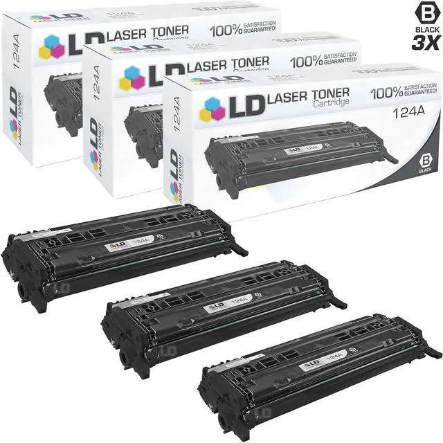 Save and print even more with our remanufactured toner cartridges! This listing contains 3, HP 124A (Q6000A) black toner cartridges. Compatible with the following Color LaserJet printers: 1600, 2600n, 2605dn, 2605dtn, CM1015mfp and CM1017mfp. These professionally remanufactured cartridges are original 124A (Q6000A) toner cartridges and are specially engineered to meet the highest standards of quality and reliability you can expect from LD. Each cartridge contains up to 85% new parts including wiper blades, OPC drum and other internal components. Our remanufactured cartridges are also backed by a two-year warranty and guaranteed to meet or exceed the same quality standards as the original brand. Please note, retail packaging may vary and these items will only work with printers purchased within the United States and Canada. LD remanufactured laser cartridges are not remanufactured by HP. We are the exclusive reseller of LD Products brand of high quality printing supplies.