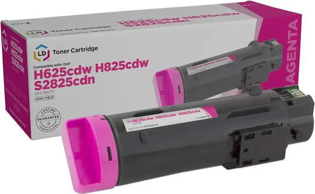 Save even more with our compatible toner cartridge. This listing contains 1 593-BBOY Magenta toner cartridge. Why pay twice as much for brand name Dell 5PG7P Cartridge when our compatible printer supplies deliver excellent quality for a fraction of the price? Our compatible cartridges for Dell are backed by 100% satisfaction & lifetime guarantee. So stock up now and save even more! This item works in the following Dell Laser Printers: H625cdw, H825cdw, and S2825cdn. Please note, retail packaging may vary and this item will only work with printers purchased within the United States and Canada. We are the exclusive reseller of LD Products brand of high quality printing supplies.