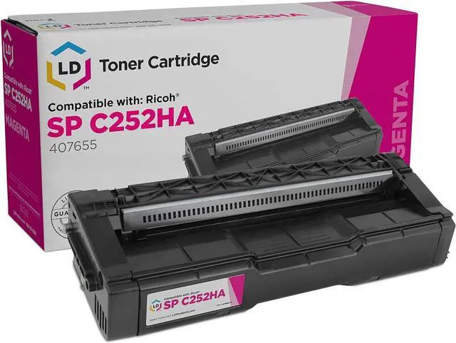 Save and print even more when you shop with LD Products! This offer includes: (1) 407655 Magenta laser toner cartridge. Why pay twice as much for expensive brand name Ricoh toner when our compatible replacement printer supplies are backed by a 100% Satisfaction and LIFETIME Guarantee? This toner cartridge is compatible with Ricoh Lanier SPC252DN, SPC252SF, Savin SPC252DN, SPC252SF, SP C252DN, C252SF, C262DNw and C262SFNw printers. Please note, retail packaging may vary and this cartridge will only work with printers purchased within the United States and Canada. The use of compatible replacement cartridges and supplies does not void your printer warranty. We are the exclusive reseller of LD Products brand of high quality printing supplies.