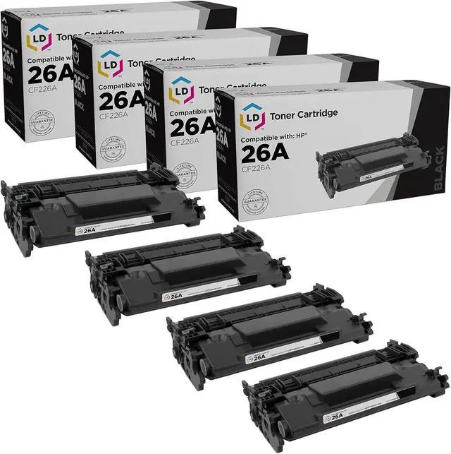 Save and print even more when you shop with LD Products! This offer includes (4) compatible replacements for HP 26 M402dn toner 26A toner cartridge. Why pay twice as much for expensive brand name CF226A toner cartridge when our compatible replacements are backed by a 100% satisfaction and lifetime guarantee? Compatible with M402d, M402dn, M402dne, M402dw, M402n, MFP M426dw, MFP M426fdn, and HP MFP M426fdw toner. Please note, retail packaging may vary, and these cartridges will only work with printers purchased within the United States and Canada. The use of replacement HP 26a toner and supplies does not void your printers warranty. Professionally manufactured by LD Products. HP is a registered trademark of HP Inc. and is not affiliated with and does not endorse LD Products.