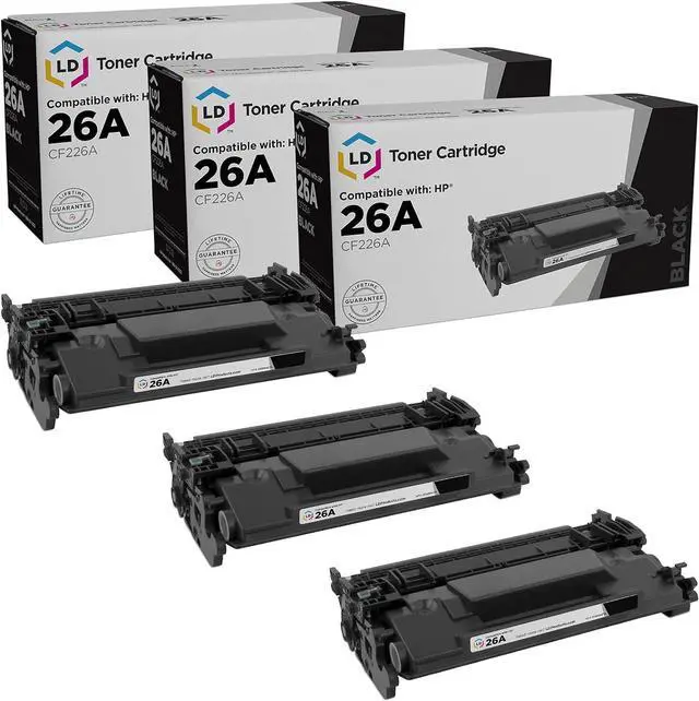 Save and print even more when you shop with LD Products! This offer includes (3) compatible replacements for HP 26 M402dn toner 26A toner cartridge for HP printer. Why pay twice as much for expensive brand name CF226A toner cartridge when our compatible replacements are backed by a 100% satisfaction and lifetime guarantee? Compatible with M402d, M402dn, M402dne, M402dw, M402n, MFP M426dw, MFP M426fdn, and MFP M426fdw toner. Please note, retail packaging may vary, and these cartridges will only work with printers purchased within the United States and Canada. The use of replacement HP 26a toner and supplies does not void your printers warranty. Professionally manufactured by LD Products. HP is a registered trademark of HP Inc. and is not affiliated with and does not endorse LD Products.