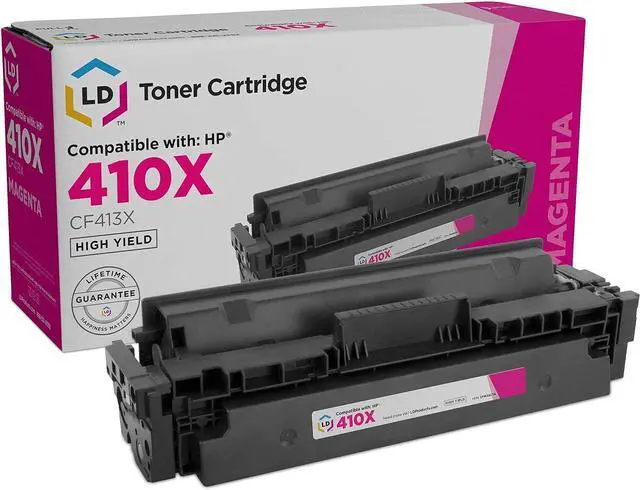 Save and print even more when you shop with LD Products! This offer includes 1 compatible replacement for HP 410X magenta / HP CF413X magenta high yield toner cartridge. Why pay twice as much for expensive brand name toner when our compatible replacement printer supplies are backed by a 100% satisfaction and lifetime guarantee? For use in LaserJet: M377dw, M452dn, M452dw, M452nw, M477fdn, M477fdw | Color LaserJet: M377dw, M452dn, M452dw, M452nw, M477fdn | LaserJet Pro: M377dw, M452dn, M452dw, M452nw, M477fdn. Please note, retail packaging may vary, and these cartridges will only work with printers purchased within the United States and Canada. The use of compatible replacement cartridges and supplies does not void your printers warranty. Professionally manufactured by LD Products. HP is a registered trademark of HP Inc. and is not affiliated with and does not endorse LD Products.