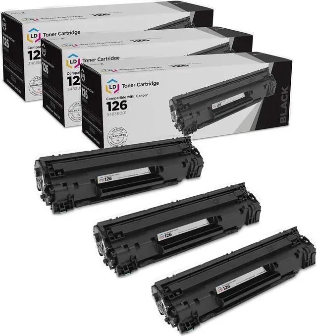 Save and print even more with our replacements for Canon toner cartridge 126. This offer includes 3 3483B001 black Canon 126 laser toner cartridges. Why pay twice as much for expensive brand name ImageClass toners when our compatible replacements are backed by a 100% satisfaction and lifetime guarantee? Compatible with Canon ImageClass LBP6200d and ImageClass lbp6230dw printers. Please note, retail packaging may vary, and these cartridges will only work with printers purchased within the United States and Canada. The use of replacement Canon 126 compatible toner and supplies does not void your printers warranty. Professionally manufactured by LD Products. Canon is a registered trademark of Canon Inc. and is not affiliated with and does not endorse LD Products.