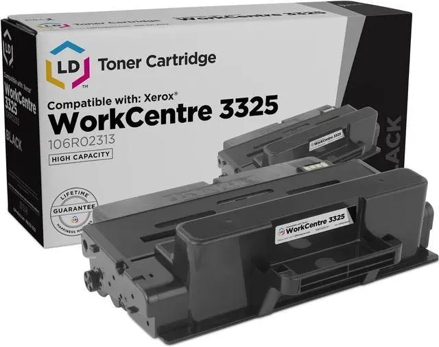Save even more with our compatible high yield laser toner cartridge. This item includes 1 106R02313 High Yield Black toner cartridge. Why pay more for brand name Xerox 106R02313 printer toner cartridge when our compatible printer supplies deliver excellent quality results for a fraction of the price? This item works with the following Xerox WorkCentre 3325 printer. We are the exclusive reseller of LD Products brand of high quality printing supplies.