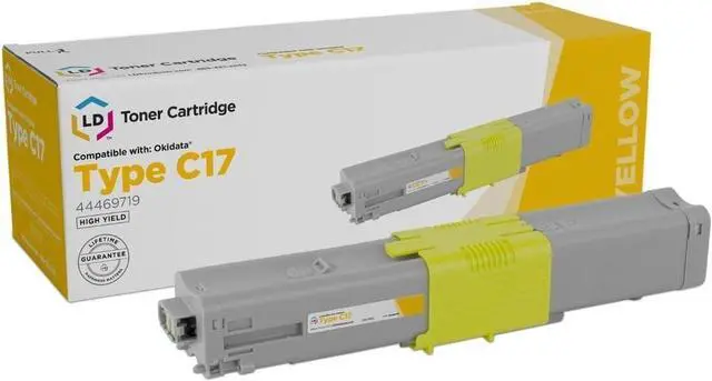 Save even more with our compatible toner cartridge. This listing contains 1 44469719 High Yield Yellow laser toner cartridge. Why pay twice as much for brand name Okidata Type C17 Cartridge when our compatible printer supplies deliver excellent quality for a fraction of the price? Our compatible cartridges for Okidata are backed by a full 2 years 100% satisfaction guarantee. So stock up now and save even more! This item works in the following Okidata OKI Printers: C530dn, C531dn, MC561, MC562w, MC890, MC950 and MC950 MFP. Please note, retail packaging may vary and this item will only work with printers purchased within the United States and Canada. We are the exclusive reseller of LD Products brand of high quality printing supplies.