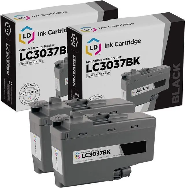 Save and print even more when you shop with LD Products! This offer includes 2 LC3037BK Black Super High Yield ink cartridges. Why pay twice as much for expensive brand name Brother ink This ink cartridge pack is compatible with Brother HL-J6000 DW, MFC-J5845DW, MFC-J5845DW XL, MFC-J5945DW, MFC-J6545DW, MFC-J6545DW XL, MFC-J6945DW printers. Please note, retail packaging may vary and these cartridges will only work with printers purchased within the United States and Canada. The use of compatible replacement cartridges and supplies does not void your printer warranty. We are the exclusive reseller of LD Products brand of high quality printing supplies.