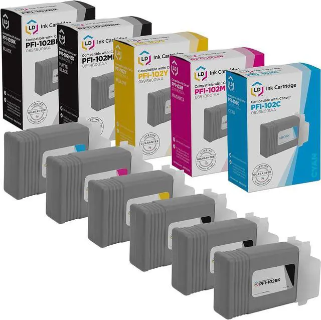 4.1 out of 5 starsLD Compatible Ink Cartridge Replacement for Canon PFI-102 (2 Matte Black, 1 Black, 1 Cyan, 1 Magenta, 1 Yellow,