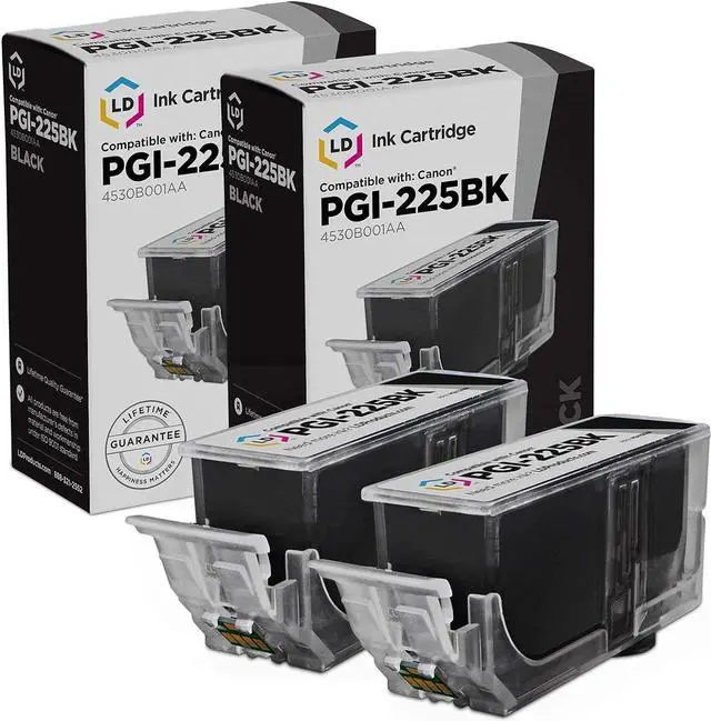 Save even more with our compatible inkjet cartridges. This set includes 2 PGI225B (4530B001AA) Pigment Black inkjet cartridges. Why pay more for brand name PGI-225BK printer ink cartridges when our compatible printer supplies deliver excellent quality results for a fraction of the price? This combo set works with the following Canon PIXMA Printers: iP4820, iP4920, iX6520, MG5120, MG5220, MG5320, MX712, MX882, & MX892. Please note, this item will only work with printers purchased within the United States and Canada. Please note, this item will only work with printers purchased within the United States and Canada. Please note, this item will only work with printers purchased within the United States and Canada. We are the exclusive reseller of LD Products brand of high quality printing supplies.