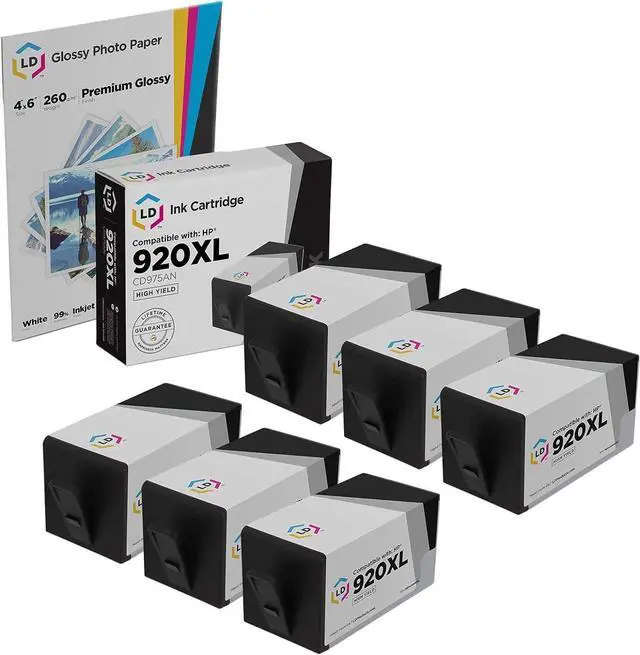 Save even more with our 6 pack of professionally remanufactured Hewlett Packard (HP) CD975AN inkjet cartridges. This set includes 6 Hewlett Packard (HP) CD975AN Black inkjet cartridges . Why pay twice as much for brand name Hewlett Packard (HP) ink cartridges when our remanufactured printer supplies deliver excellent quality results for a fraction of the price? These LD ink cartridges have been thoroughly cleaned along with the print head nozzles, and were filled with the same ink formula. The internal back pressure was insured, the shell was inspected for any possible leakage and the electrical circuitry was tested before finally undergoing an actual print test. Our ink cartridges for your Hewlett Packard (HP) printer are backed by our 100% Satisfaction and Lifetime Guarantee, so stock up no and save even more! Our remanufactured ink cartridges are not remanufactured by HP. For use in the following Hewlett Packard Office Jet printers: 6000, 6500, 6500a, 6500a+, 7000, 7500a. We are the exclusive reseller of LD Products brand of high quality printing supplies.com.