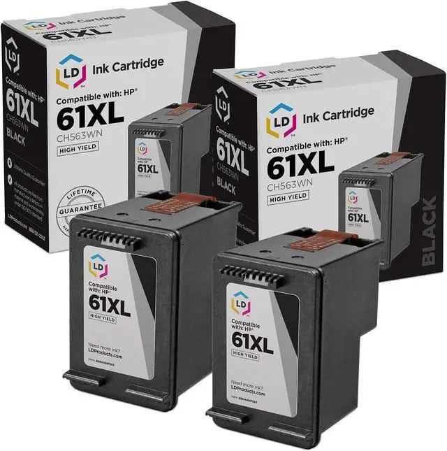 Save and print even more when you shop with LD Products! This offer includes (2) CH563WN / HP 61XL high yield black ink cartridges; they replace the original CH561WN / HP 61 standard yield black ink cartridges. Why pay twice as much for expensive brand name Hewlett Packard ink when our remanufactured printer supplies are backed by a 100% Satisfaction and LIFETIME Guarantee? This ink cartridge set is compatible with HP DeskJet 1000, 1010, 1011, 1012, 1015, 1050, 1051, 1055, 1056, 1510, 1512, 2050, 2510, 2512, 2514, 2540, 2541, 2542, 2543, 2544, 2545, 2547, 2549, 3000, 3050, 3051A, 3051A-J611h, 3052A, 3052A-J611e, 3052A-J611f, 3052A-J611g, 3054, 3054A-J611c, 3054A-J611d, 3054A-J611j, 3055A-J611n, 3056A, 3057A-J611n, 3059A-J611n, 3510, 3511, 3512, 3516 | ENVY 4500, 4501, 4502, 4503, 4504, 4505, 4507, 4508, 4509, 5530, 5531, 5532, 5534, 5535, 5539 and OfficeJet 2620, 4630, 4632, 4634, 4635 printers. Please note, retail packaging may vary and these cartridges will only work with printers purchased within the United States and Canada. The use of remanufactured replacement printing supplies does not void your printer warranty. HP does not remanufacture our remanufactured ink cartridges. We are the exclusive reseller of LD Products brand of high quality printing supplies.