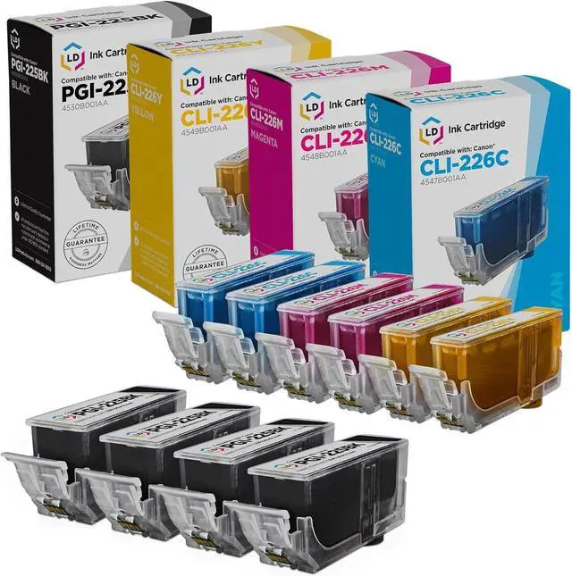 Save even more with our set of 12 compatible inkjet cartridges. This set includes 4 PGI225B Pigment Black, 2 CLI226B Black, 2 CLI226C Cyan, 2 CLI226M Magenta, and 2 CLI226Y Yellow inkjet cartridges. Why pay twice as much for brand name Brother PGI225 and CLI226 cartridge when our compatible printer supplies deliver excellent quality results for a fraction of the price? Our compatible cartridges for Canon are backed by a full 100% satisfaction guarantee. So stock up now and save even more! This set works in the following Canon PIXMA printers: iP4820, iP4920, iX6520, MG5120, MG5220, MG5320, MX712, MX882, and MX892.