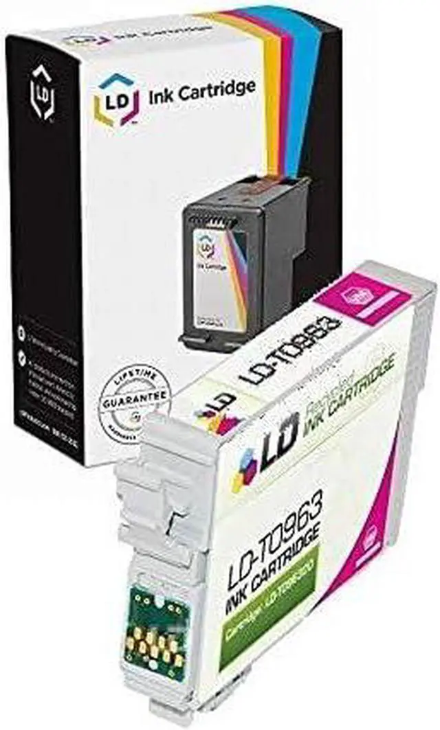 This professionally remanufactured Epson vivid magenta (T096320) inkjet cartridge is an original Epson T0963/T096320 ink-jet cartridge which has been through one cycle of service and has been recharged. This Epson vivid magenta T096320 ink cartridge has been thoroughly cleaned along with the printhead nozzles. Then the Epson T096320 was filled with the same ink formula, the internal back pressure was insured and then it was inspected for any possible shell leakage, tested the operation of all electrical circuitry and finally run through an actual print test. The ink monitoring chip on this remanufactured Epson T096320 is the original chip which has been reset to provide accurate ink monitoring. If the T0963 vivid magenta inkjet cartridge passes our rigid standards, it has been remanufactured for your Epson Stylus Photo R2880 printer! We offer a Two Year 100% Quality Satisfaction Guarantee on our remanufactured T096320 vivid magenta ink cartridge. LD Products Cartridges are manufactured in an internationally certified ISO 9002 factory. LD Products cartridges come with a 100% Two Year money back guarantee and technical support. For use in the following printers: Stylus Photo R2880. We are the exclusive reseller of LD Products brand of high quality printing supplies.