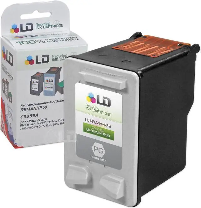 This LD remanufactured C9359AN (HP 59) photo gray inkjet cartridge is an original Hewlett Packard C9359AN ink cartridge which has been through one cycle of service and has been recharged. This LD remanufactured C9359AN ink cartridge has been thoroughly cleaned along with the printhead nozzles. Following the cleaning process, we refilled the cartridge with a professionally manufactured ink formula that is designed to produce vibrant and long-lasting prints comparable to HP. After carefully inspecting the shell for leakage and monitoring the electrical circuitry for efficiency, we put the cartridge through a final print test. Our remanufactured ink cartridges are not remanufactured by HP. We offer a For use in the following HP Photosmart printers: 7760, 7960, 7660, 7755, 7960w, 7760w, 7760v, 7660w, 7660v, 245, 245xi, 245v, 145xi, 145v, 145, 200 Series, 100 Series. We are the exclusive reseller of LD Products brand of high quality printing supplies.