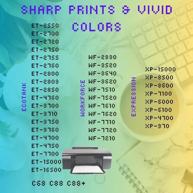Usage: Refill for Epson Deskjet Printers Including C88 C88+ WF7720 WF7710 WF2750 WF3620 ET2720 ET2650 ET2750 and Others.