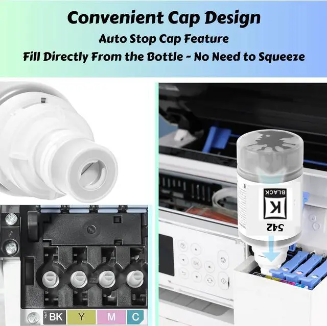 T542 Compatible Refill Set + Black of 5 Bottles All Supplied with Pigment Ink 542 For Epson T542120 T542220 T542320 T542420 For ET-5180 ET-5150 ET-5170 ET-5850 ET-5800 ET-5880 ET-16600 ET-16650 C8090
