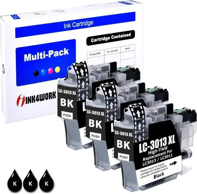 INK4WORK Black Compatible Replacement for Brother LC3013XL LC-3013 LC3011 XL Ink Cartridge for use with MFC-J491DW MFC-J497DW MFC-J690DW MFC-J895DW (Black, 3-Pack)