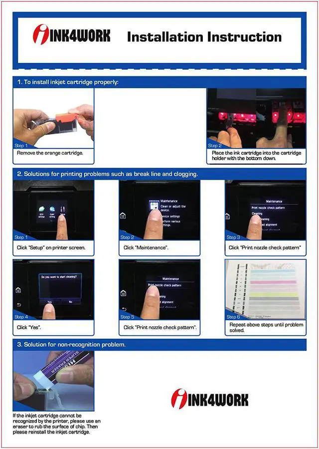 All cartridges are manufactured in an ISO 9001 certified facility. INK4WORK offers one-Year Warranty and 100% Quality Satisfaction Guarantee