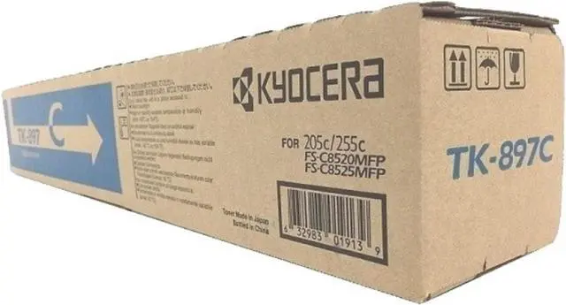 Kyocera 1T02K0CUS0 Model TK-897C Cyan Toner Cartridge, Compatible with FS-C8025MFP, FS-C8520MFP, FS-C8525MFP, TASKalfa 205c, 255 and 255c Color Multifunctional Printers