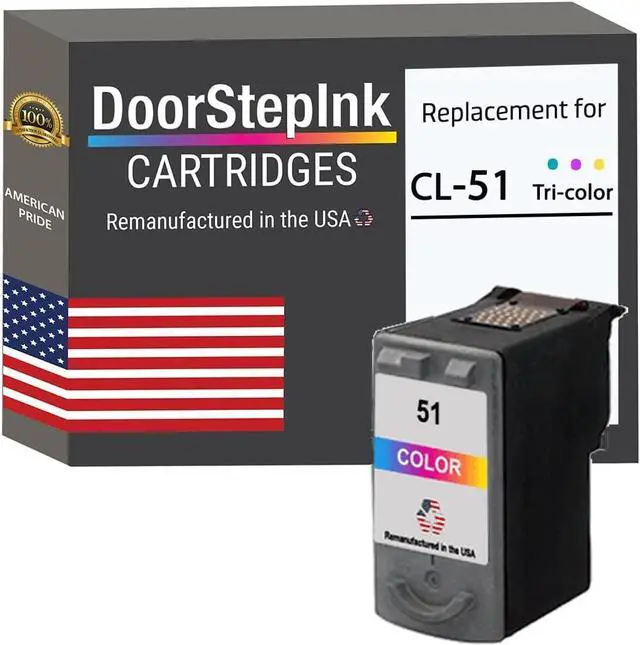 • Package Contents: 1 Color DoorStepInk remanufactured in the USA Ink Cartridge Replacement for Canon CL-51