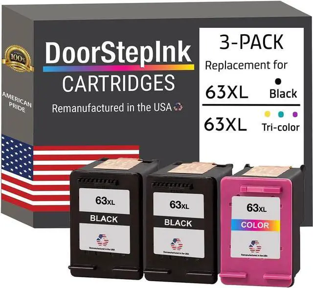 DoorStepInk Remanufactured in The USA Ink Cartridge Replacements 63XL 63 XL 2 Black F6U64AN 1 Color F6U63AN Envy 4523 4524 4516 HP Officejet 5255 5258 3834 HP DeskJet 2136 3638 3637