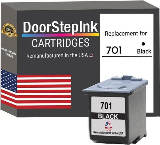 Package Contents: 1 Black DoorStepInk remanufactured in the USA Ink Cartridge Replacement for HP 701