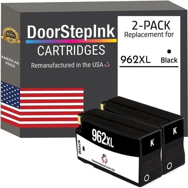 Package Contents: 2 Black DoorStepInk remanufactured in the USA Ink Cartridge Replacement for HP 962XL