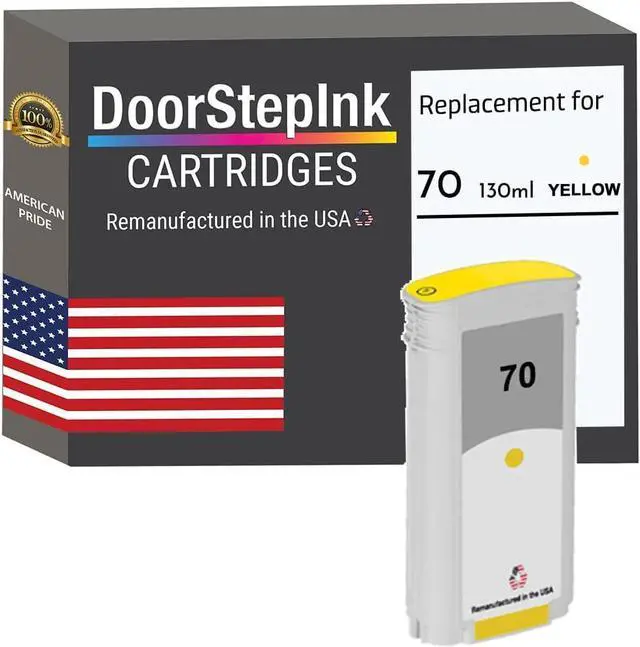 DoorStepInk Remanufactured in the USA ink cartridge replacement for HP 70 Yellow C9454A 130 ml per cartridge capacity | Shows Ink Levels