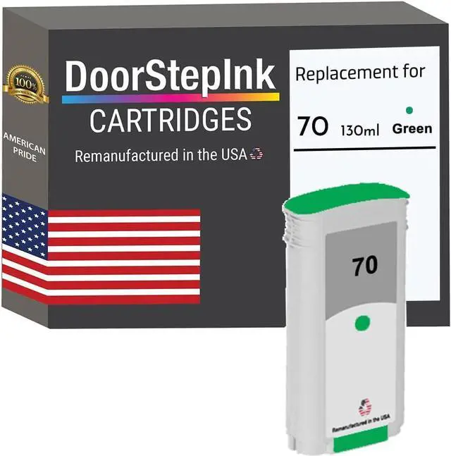 DoorStepInk Remanufactured in the USA ink cartridge replacement for HP 70 Green C9457A 130 ml per cartridge capacity | Shows Ink Levels