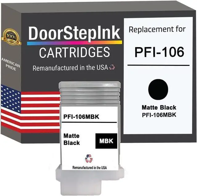• DoorStepInk Remanufactured in The USA Ink Cartridge Replacements for Canon PFI-106 130ml Matte Black for Printer imagePROGRAF iPF6400 24 In. imagePROGRAF iPF6400 S 24 In. imagePROGRAF iPF6400 SE 24 In. imagePROGRAF iPF6450 24 In.