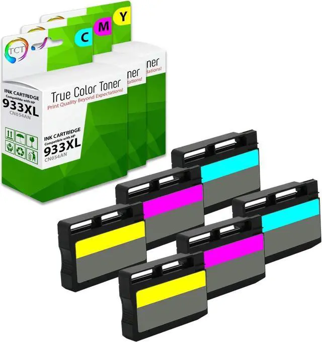 TRUE COLOR TONER: Print Quality Beyond Your Expectations!With True Color Toner compatible ink cartridges, say goodbye to outrageously priced toner cartridges! Our premium cartridges are the perfect replacements to their OEM versions.* Contents: 2 933XL Cyan, 2 933XL Magenta, and 2 933XL Yellow replacement Ink Cartridges* Replaces OEM#(s): CN054AN (933XL C), CN055AN (933XL M), CN056AN (933XL Y)* Page Yield(s): 825 pages average page yield at 5% coverage.