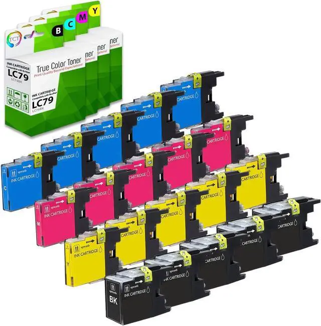 TRUE COLOR TONER: Print Quality Beyond Your Expectations!With True Color Toner compatible ink cartridges, say goodbye to outrageously priced toner cartridges! Our premium cartridges are the perfect replacements to their OEM versions.* Contents: 5 LC79 Black, 5 LC79 Cyan, 5 LC79 Magenta, and 5 LC79 Yellow replacement Ink Cartridges* Replaces OEM#(s): LC79BK, LC79C, LC79M, LC79Y* Page Yield(s): 2,400 pages per Black cartridge, and 1,200 per Color cartridge average page yield at 5% coverage.* Package Quantity: Twenty Pack ( 5BK,5C,5M,5Y )* Compatible with: Brother MFC 5910DW, MFC J6510DW, MFC J6710DW, and MFC J6910DW* Warranty: TCT cartridges are Manufactured in ISO 9000 and 10041 certified facilities. We guarantee the quality and reliability of our compatible cartridges, and back them with a 1 Year warranty against manufacturer defects.