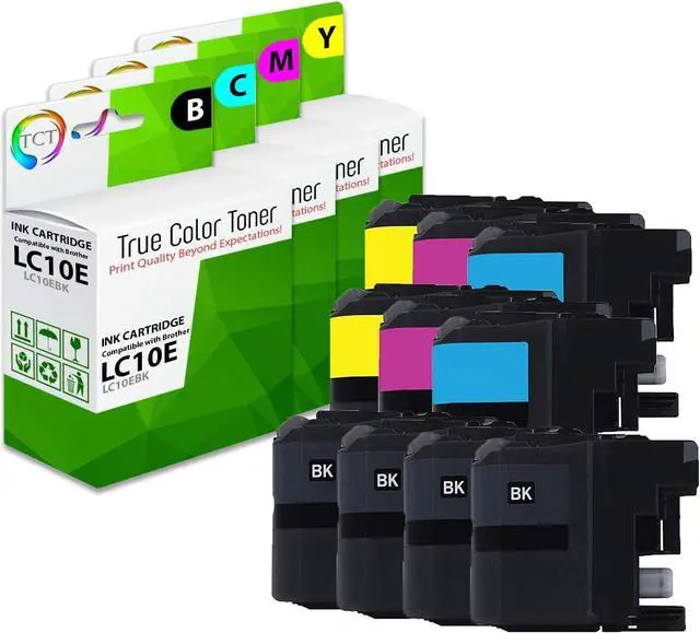 TRUE COLOR TONER: Print Quality Beyond Your Expectations!With True Color Toner compatible ink cartridges, say goodbye to outrageously priced toner cartridges! Our premium cartridges are the perfect replacements to their OEM versions.* Contents: 4 10E Black, 2 10E Cyan, 2 10E Magenta, and 2 10E Yellow replacement Ink Cartridges* Replaces OEM#(s): LC10EBK, LC10EC, LC10EM, LC10EY* Page Yield(s): 2,400 pages per Black cartridge, and 1,200 per Color cartridge average page yield at 5% coverage.* Package Quantity: Ten Pack ( 4BK,2C,2M,2Y )* Compatible with: Brother MFC-J6925DW* Warranty: TCT cartridges are Manufactured in ISO 9000 and 10041 certified facilities. We guarantee the quality and reliability of our compatible cartridges, and back them with a 1 Year warranty against manufacturer defects.