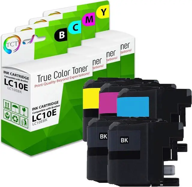 TRUE COLOR TONER: Print Quality Beyond Your Expectations!With True Color Toner compatible ink cartridges, say goodbye to outrageously priced toner cartridges! Our premium cartridges are the perfect replacements to their OEM versions.* Contents: 2 10E Black, 1 10E Cyan, 1 10E Magenta, and 1 10E Yellow replacement Ink Cartridges* Replaces OEM#(s): LC10EBK, LC10EC, LC10EM, LC10EY* Page Yield(s): 2,400 pages per Black cartridge, and 1,200 per Color cartridge average page yield at 5% coverage.* Package Quantity: Five Pack ( 2BK,1C,1M,1Y )* Compatible with: Brother MFC-J6925DW* Warranty: TCT cartridges are Manufactured in ISO 9000 and 10041 certified facilities. We guarantee the quality and reliability of our compatible cartridges, and back them with a 1 Year warranty against manufacturer defects.