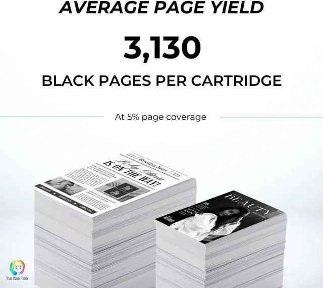 Page Yield: Up to 3130 pages at 5% coverage (Letter/A4) per cartridge.
