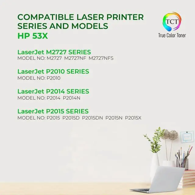 • Package Contents: 2 × TCT Compatible Replacement Monochrome Toner Cartridges for the HP Q7553X - 53X