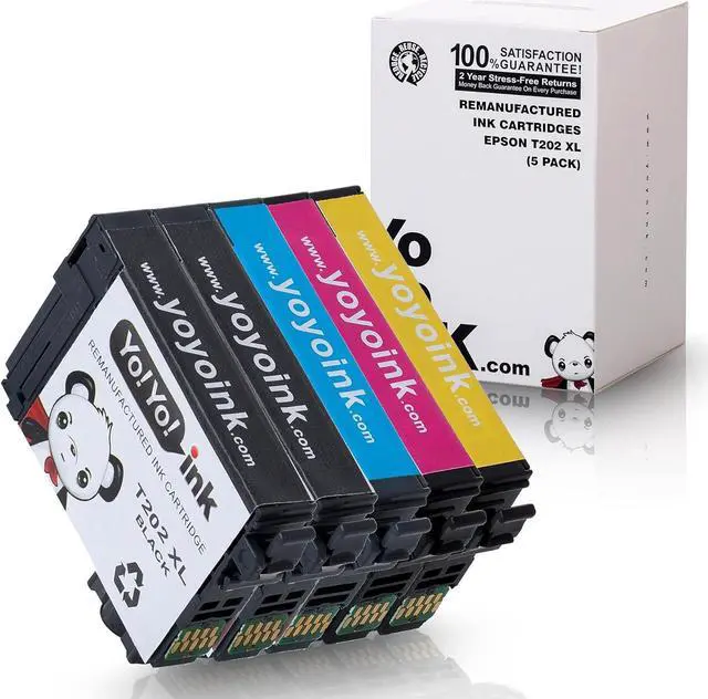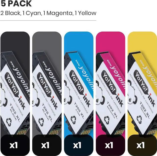 5 PACK T202XL 202 XL (2 Black, 1 Cyan, 1 Magenta, 1 Yellow)