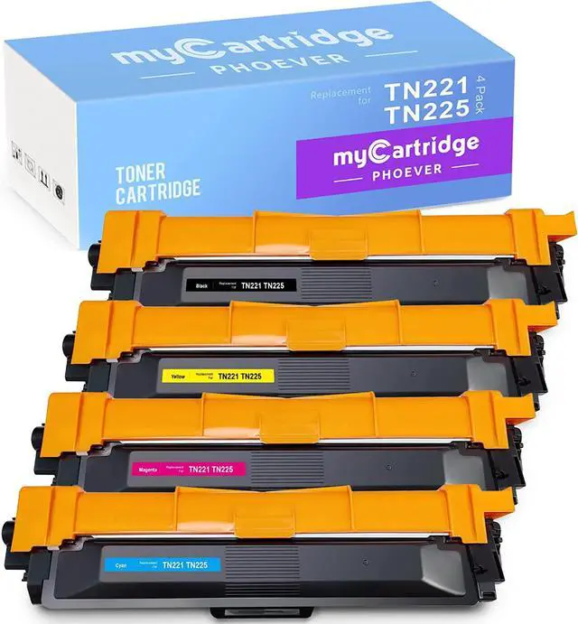 Colors: 1 x Black TN221 toner cartridges TN221BK, 1 x Cyan TN225 toner cartridges TN225C, 1 x Magenta TN225 toner cartridges TN225M, 1 x Yellow TN225 toner cartridges TN225Y