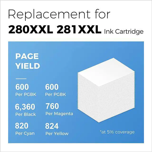 • CONTAIN: myCartridge compatible ink cartridges replacement for Canon PGI-280XXL CLI-281XXL; 6-Pack (2 PGI-BK, 1 CLI-BK, 1 Cyan, 1 Magenta, 1 Yellow)