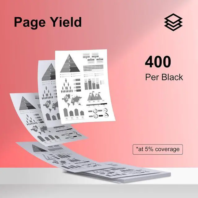 Page Yield: Up to 400 page for each black ink cartridge, at 5% coverage by standard A4 paper