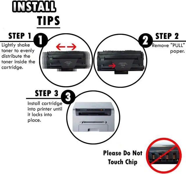 PRODUCT INFO Compatible Toner Cartridges for Samsung SCX-D4200A (SCXD4200A) Package Contents TONER CARTRIDGE DETAILS Top Quality Photoconductor Drum Professional Quality Toner Advanced High-quality parts Precisely Engineered INSTALL TIPS STEP 1 STEP 2 STEP 3 STEP 4