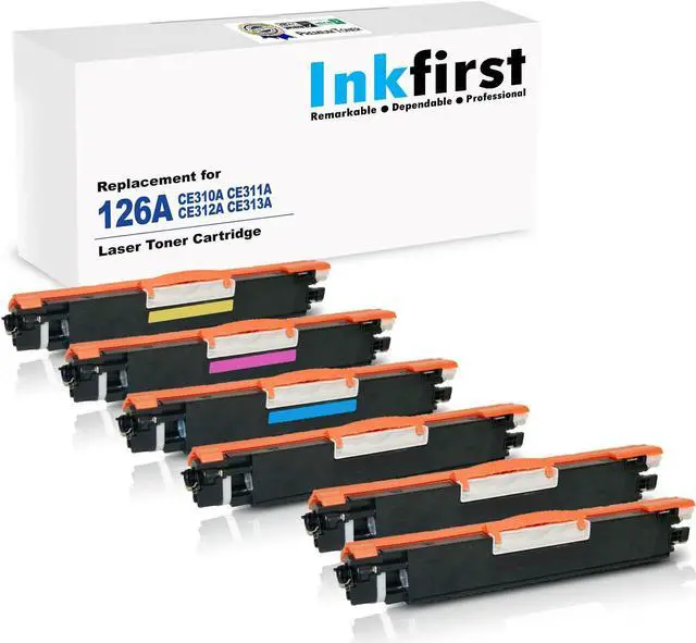 These Inkfirst compatible Toner Cartridges Replacement for HP 126A CE310A CE311A CE312A CE313A are manufactured in ISO9001 and ISO40001 certified manufacturing facilities. These replacement Toner cartridges are cost-effective and they offer satisfying quality for all your printing needs. Save even more now with the purchasing of this value pack of 6 compatible toner cartridges replacement for HP 126A . These compatible toner cartridges replacement for HP 126A are for use in the following HP printers: HP LaserJet Pro 100 color MFP M175nw/ LaserJet Pro CP1025nw/ TopShot LaserJet Pro M275 MFP Color.