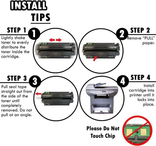 PRODUCT INFO 2PK Inkfirst Compatible Toner Cartridges Replacement for HP C7115X 15X Package Contents TONER CARTRIDGE DETAILS Top Quality Photoconductor Drum Professional Quality Toner Advanced High-quality parts Precisely Engineered INSTALL TIPS STEP 1 STEP 2 STEP 3 STEP 4