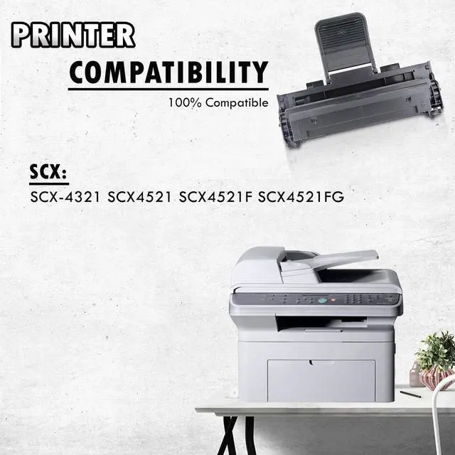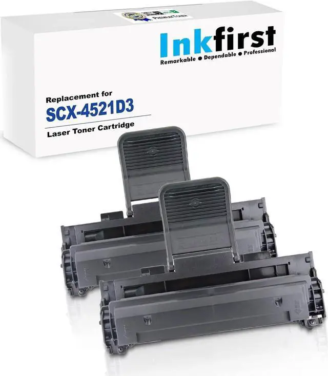 These Inkfirst compatible remanufactured SCX4521 black toner cartridges are manufactured in ISO9001 and ISO40001 certified manufacturing facilities. These Samsung SCX4521 replacement toner cartridges are cost-effective and they offer professional high printing quality for all your printing needs. You'll be getting the same OEM Samsung SCX4521 (SCX4521D3) toner cartridges printing quality but only at a fraction of the cost. Save even more now with the purchasing of this value pack of 2 compatible toner cartridges for Samsung SCX4521. These replacement Samsung SCX4521 toner cartridges are for use in the following Samsung printers: Samsung SCX4521 / SCX4521F / SCX4521FG / SCX-4321.