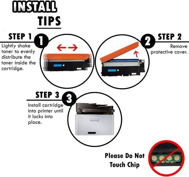 PRODUCT INFO Compatible Cyan Toner Cartridge for Samsung CLT-C406S Package Contents TONER CARTRIDGE DETAILS Page Yield Display Professional Quality Toner Advanced High-quality parts Precisely Engineered INSTALL TIPS STEP 1 STEP 2 STEP 3 STEP 4