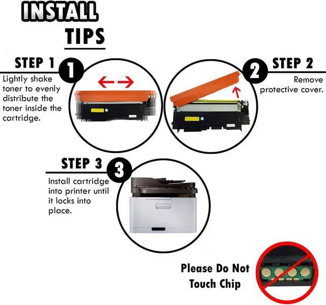 PRODUCT INFO Compatible Toner Cartridges for Samsung CLT-K406S CLT-C406S CLT-M406S CLT-Y406S Package Contents TONER CARTRIDGE DETAILS Page Yield Display Professional Quality Toner Advanced High-quality parts Precisely Engineered INSTALL TIPS STEP 1 STEP 2 STEP 3 STEP 4