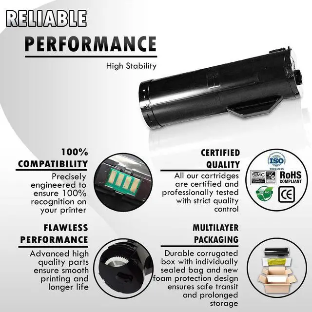 Precisely engineered to ensure seamless installation and reliable printing performance. Each toner cartridge go through rigorous quality control process to ensure consistent and stable performance.