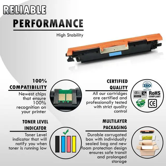 These Inkfirst compatible remanufactured CF351A cyan Toner cartridges are manufactured in ISO9001 and ISO40001 certified manufacturing facilities. These HP CF351A replacement Toner cartridges are cost-effective and they offer professional high printing quality for all your printing needs. You'll be getting the same OEM HP CF351A Cyan Toner cartridges printing quality but only at a fraction of the cost. These replacement HP CF351A Cyan Toner cartridges are for use in the following HP printers: Pro MFP M177fw/ Pro MFP M176.