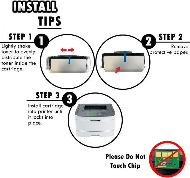PRODUCT INFO Inkfirst Compatible Toner Cartridge for Lexmark E260 E360 E460 EE260A11A 3PK Package Contents TONER CARTRIDGE DETAILS Smooth Printing Professional Quality Toner Advanced High-quality parts Precisely Engineered INSTALL TIPS STEP 1 STEP 2 STEP 3 STEP 4